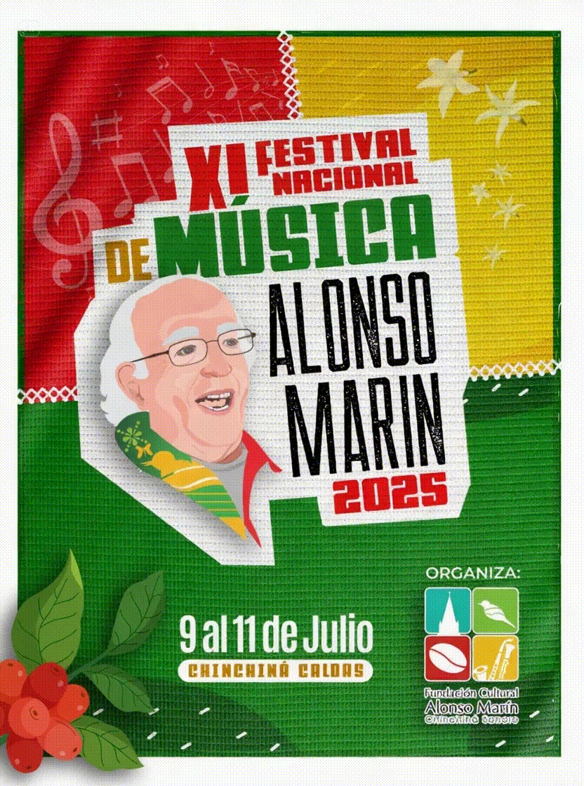 Compartimos con gran alegría la programación del XI Festival Nacional de Música Alonso Marín, que se realizará del 9 al 11 de Julio de 2025 en Chinchiná -Caldas.